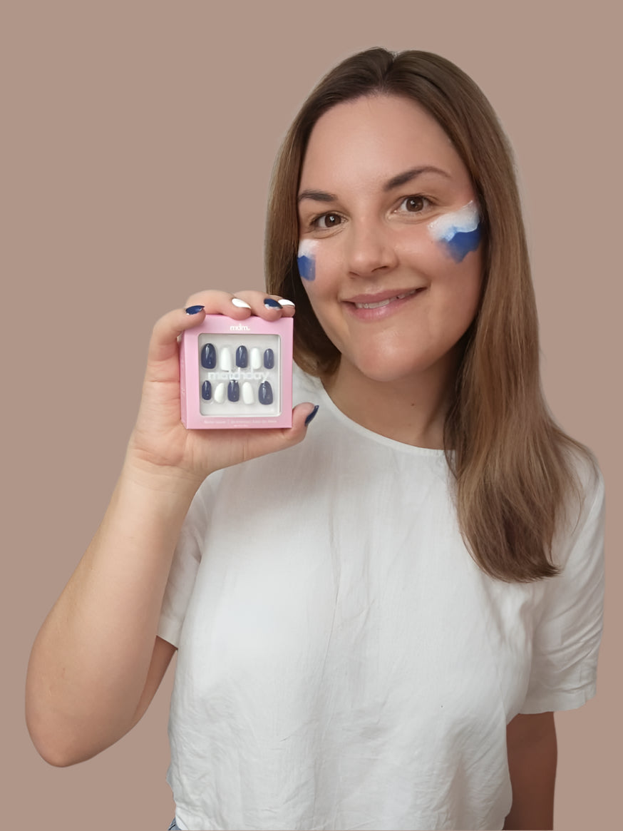 Now I support teams in all kinds of colours, but finding the right shades to match has always been tricky. That’s when I had the idea for Matchday Mani. Press-on nails that are reusable, easy to apply, and made to match your team colours so you can show your support, your way.
